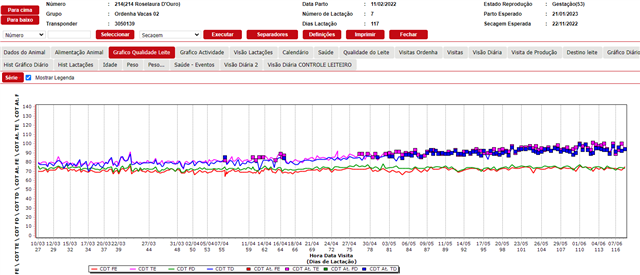 Mas mesmo assim, acho que a outra quantia, se enquadra em um problema subclínico, que aos poucos está a morrer no quarto. Fazemos cultura dentro da propriedade e muitas destas dão negativa. E no gráfico de condutividade ela sempre vem subindo gradualmente! como este caso da foto.
